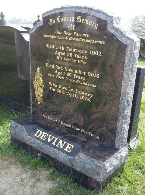 Devlin Memorials in Donegal provides you with a memorial which best reflects the memory of your loved ones. We offer the greatest of respect whilst providing a compassionate, sympathetic and sensitive service in which gives you comfort at your time of loss.